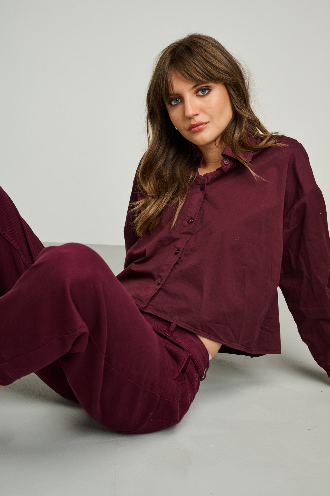 The Chardonnay Cotton Shirt in deep wine is a timeless piece with a modern twist. Made from cotton, it has a relaxed fit, sharp collar, and a detachable tie for versatile styling. Wear it on its own or layer with trousers, skirts, or denim for any occasion.